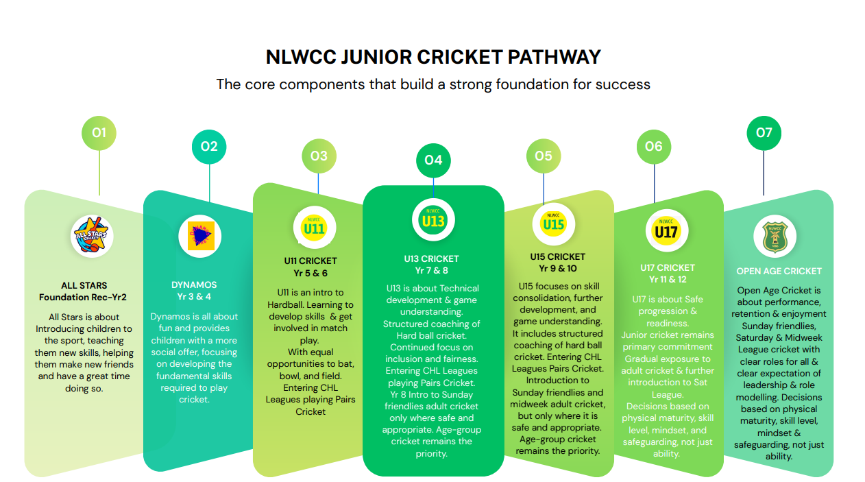 - Introduction to Sunday & midweek adult cricket (where appropriate)